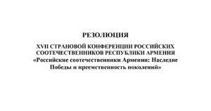 РЕЗОЛЮЦИЯ XVII СТРАНОВОЙ КОНФЕРЕНЦИИ РОССИЙСКИХ СООТЕЧЕСТВЕННИКОВ РЕСПУБЛИКИ АРМЕНИЯ «Российские соотечественники Армении: Наследие Победы и преемственность поколений»