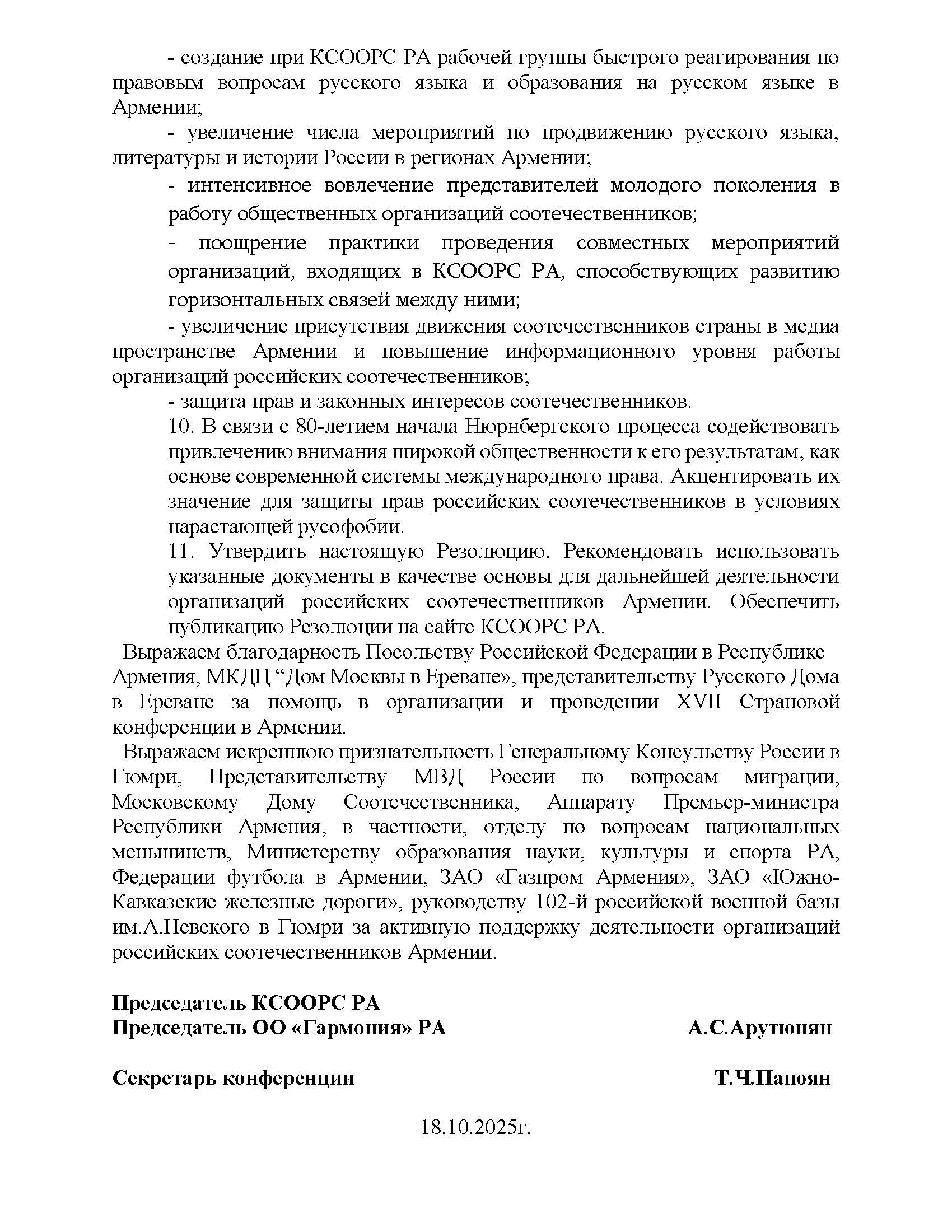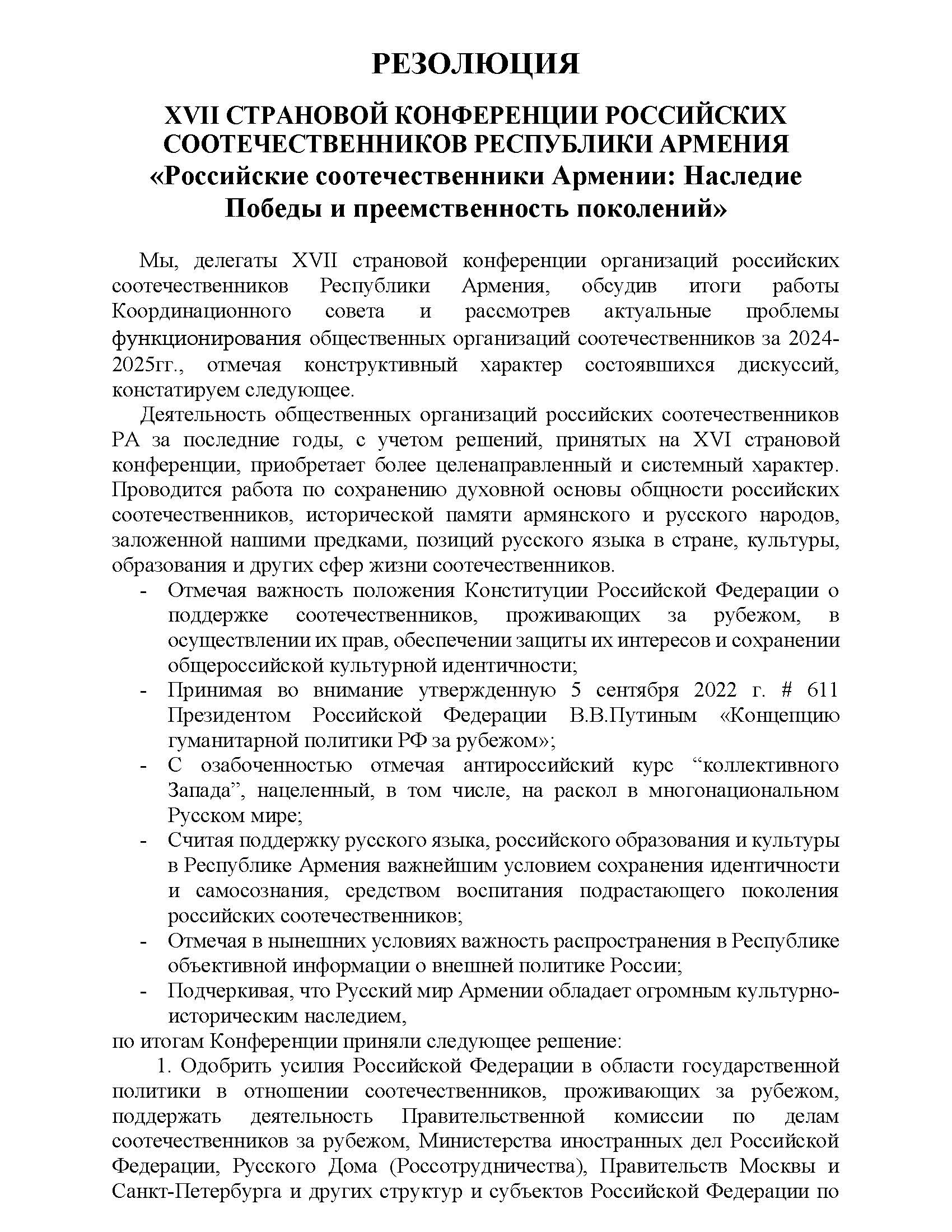 В Ереване прошла XVII Страновая конференция российских соотечественников